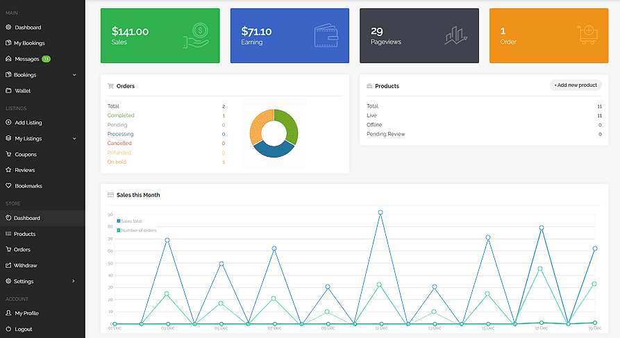 Each user can create their own store with products. On listing pages business vendors can display products from their store and add an advertising widget that links to shop. Coworking businesses can sell their merchandise with ease.